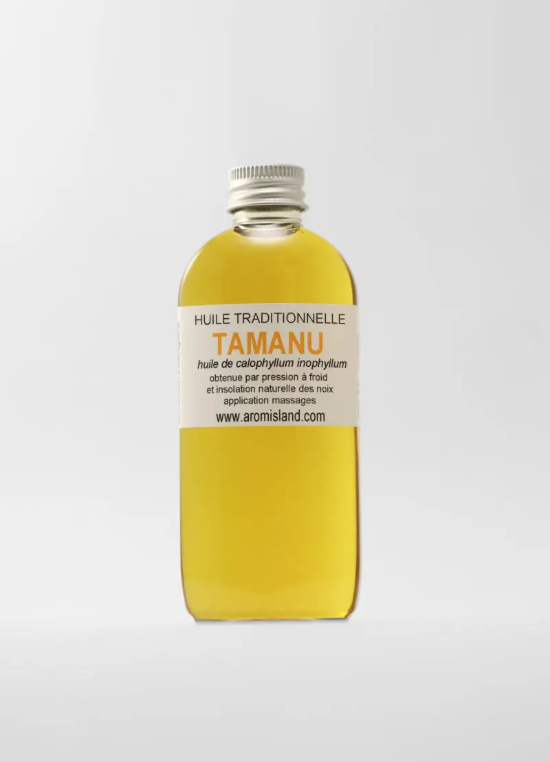 Huile de Tamanu jaune (Calophyllum inophyllum) de Madagascar. Pressée à froid après séchage prolongé. Cicatrisante, antidouleur, douce et efficace pour la peau.